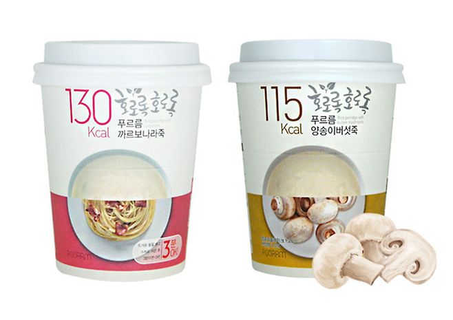 칼로리에 민감한 다이어터도 부담 없이 즐길 수 있는 죽 '푸르름 컵스프'. 저칼로리 다이어트식으로 한 손에 들어오는 아담한 컵에 영양이 가득 들어있다. 컵에 분말을 넣고, 전자레인지가 필요 없이 뜨거운 물만 부으면 된다. 건조한 밥이 들어가 식감이 뛰어나고 포만감도 우수하다. 기본적으로 간이 세지 않지만, 입맛에 따라 물양을 조절해서 즐기면 된다. 카르보나라 죽, 감자죽, 야채죽, 단호박죽 등 칼로리별로 종류도 다양하다.