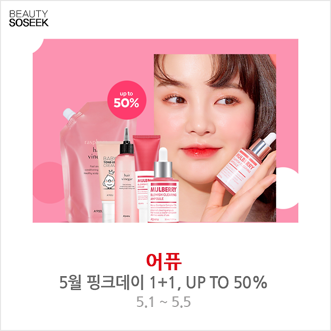 어퓨 5월 핑크데이 1+1, UP TO 50%