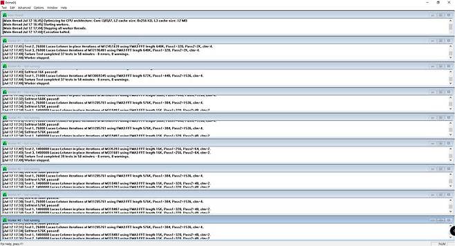 또한, 오버클럭의 중요한 안정성 여부도 인텔 XTU는 물론 Prime 테스트도 오랜 시간동안 문제없이 버텨내는 모습으로 IPM의 원버튼으로 자동오버클럭이 성공적임을 볼 수 있었다.