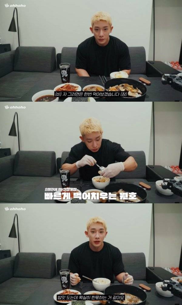 가수 원호가 밥도둑 3종 세트 먹방 ASMR 도전에 나섰다.