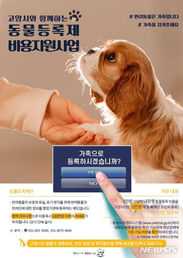 20일 고양시에 따르면, 6월 현재 고양 지역에 등록된 반려동물은 총 6만마리다. 2019년부터 본격 추진된 동물등록제를 통해 누적된 반려동물은 경기도 전체 2위 규모다.