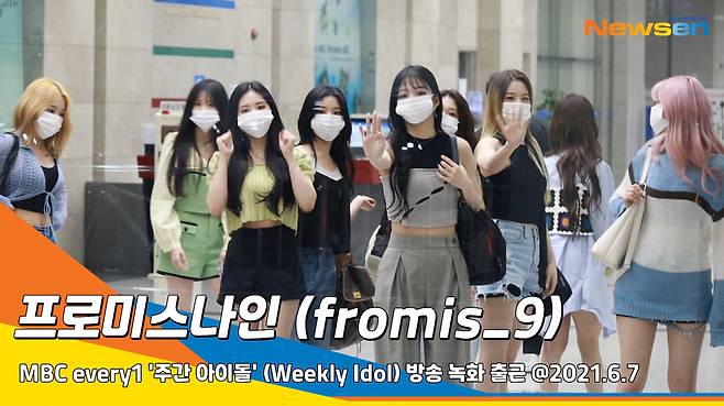 가수 프로미스나인 (fromis_9) 멤버 이새롬, 송하영, 장규리, 박지원, 노지선, 이서연, 이채영, 이나경, 백지헌이 6월 7일 오후 경기도 고양시 일산동구 MBC드림센터에서 진행되는 MBC every1 '주간 아이돌' (Weekly Idol) 방송 녹화에 참석했다.