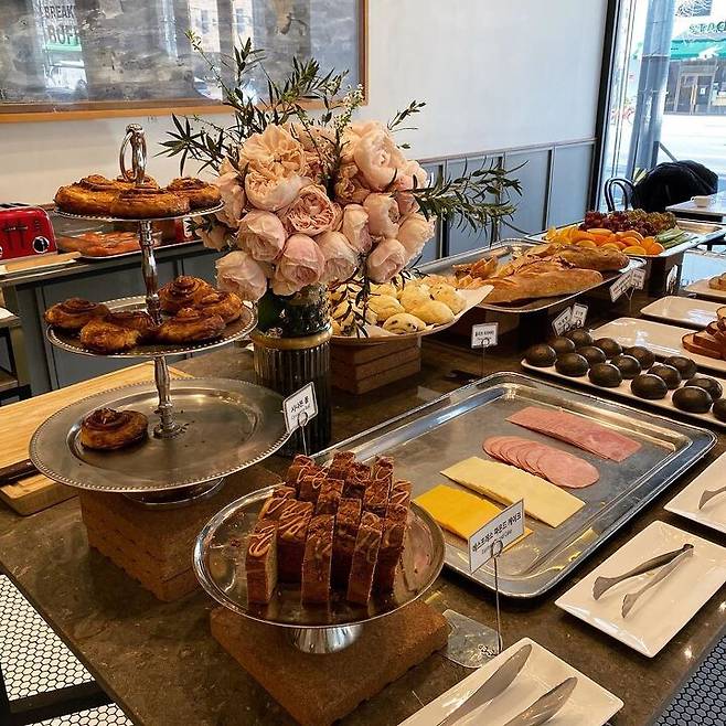 이른 아침부터 조식 빵 뷔페를 운영하는 곳으로 홍대 쪽에 위치해 있다. 마치 호텔 조식 스타일로 제공되는 뷔페는 꽤 다양한 종류의 빵을 비롯해 함께 곁들여 먹을 수 있는 치즈와 햄, 과일과 달걀, 수프 등도 있어 든든한 식사로 손색이 없다. 담백한 바게트와 치아바타부터 달달한 파운드 케이크와 스콘도 있어 입맛대로 골라 먹기 좋으며 스프와 과일, 오믈렛 등도 구색을 맞춰준다. 다소 고급스러운 구성이며 원하는 음료의 가격에 정해진 금액을 추가해서 지불하는 방식이다.