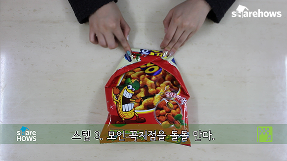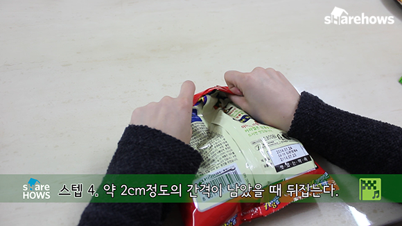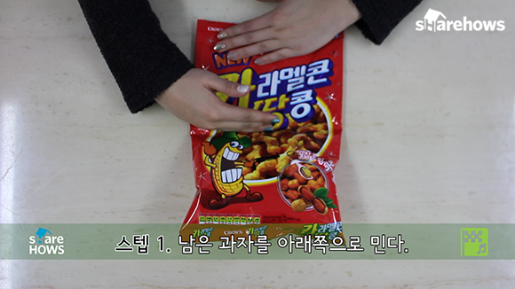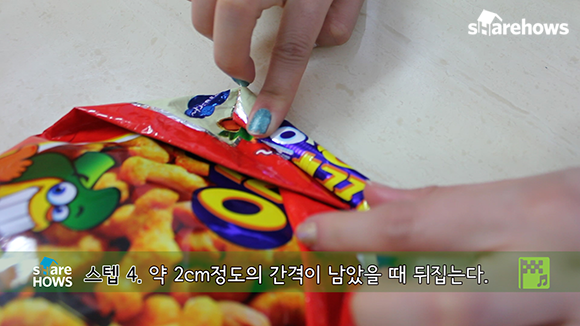이 노하우는 과자를 절반이상 먹었을 때 이용해야 좋아요.