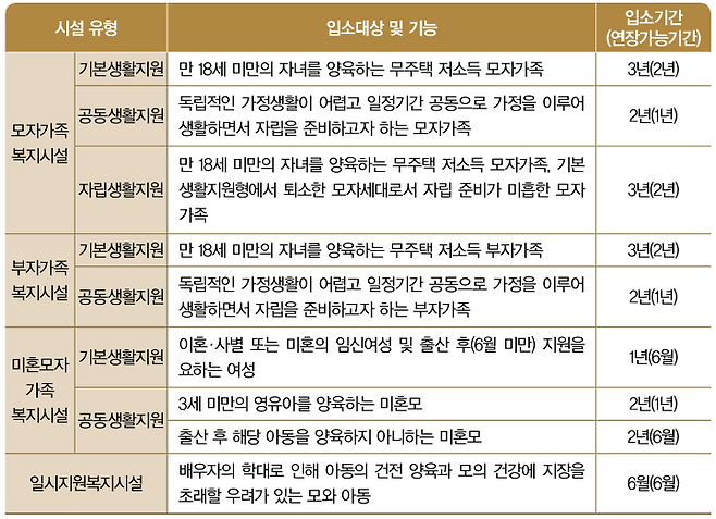 - 저소득 한부모가족에게 일정 기간 머물 수 있는 주거를 지원