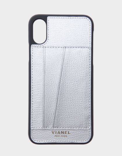 4 실버 메탈릭 송아지 가죽 소재의 카드 홀더 아이폰 X 케이스 100달러 비아넬.