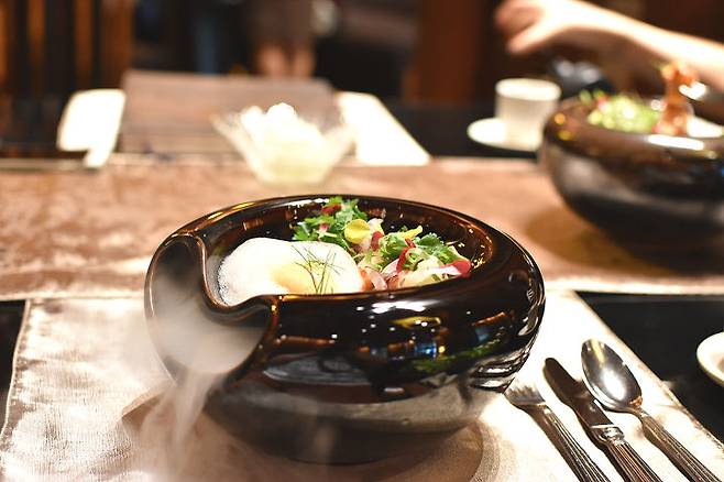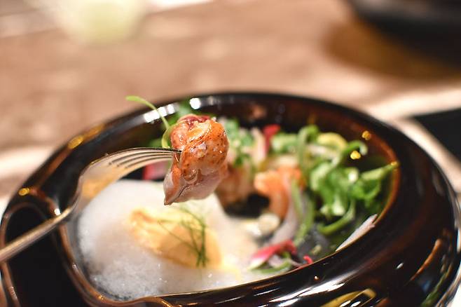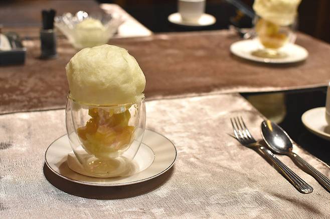 드라이아이스에서 나오는 연기가 몽환적이라 구름 위에서 식사를 하는 느낌이었어요.