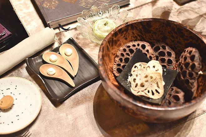 저희는 Mini Winter Journey라는 런치 코스를 주문했는데 가격은 1인당 1,800밧으로 6만 1천 원 정도인데 방콕의 많은 레스토랑이나 식당들은 기본으로 17%가 텍스이자 서비스 요금으로 붙어서 결과론적으로는 인당 7만 1천 원짜리 코스였어요.
