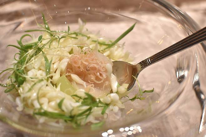 그 밖의 재료는 오이, 레몬그라스, 그리고 특이했던 것은 홋카이도산 관자였습니다.