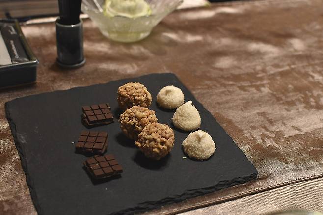 초콜릿을 비롯해서 강정, 마시멜로우 같은 것들이 입가심용으로 제공됐어요.