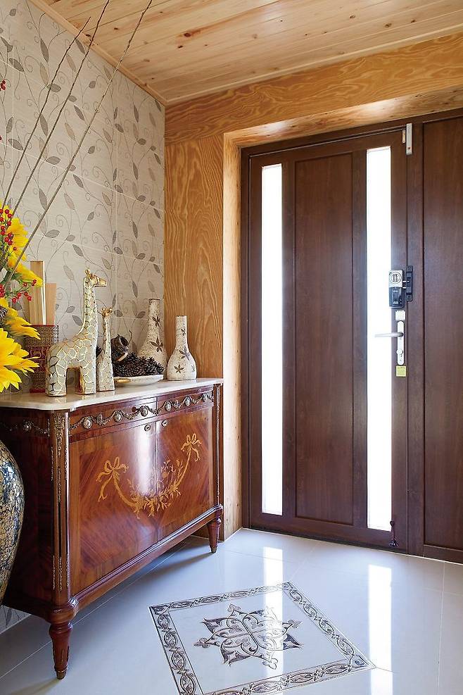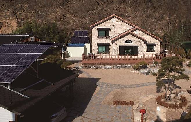 집 정면 좌측으로 태양광이 보인다. 연간 일조량이 풍부해 일정한 전기를 생산한 덕에 전기가 남아돈다. 태양열 시설도 만들어 따로 급탕시설을 가동하지 않아도 부부 내외가 사용하기에 넉넉하다.