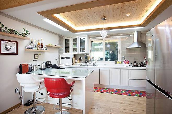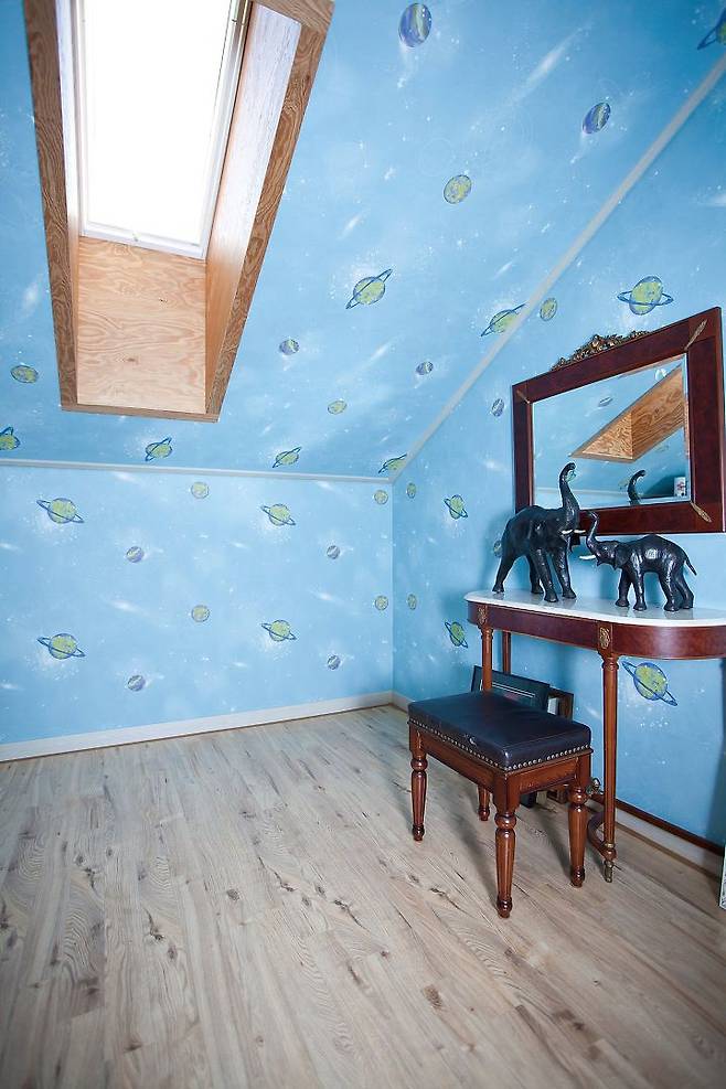 실내 공간은 버려진 공간이 없도록 복도를 최소화하고 모든 공간의 접근성이 좋도록 거실 중심으로 각 실을 배치했다. 거실 앞 데크는 면적이 넓어 여러 사람의 야외활동에도 넉넉하다. 손자들이 왔을 때 가장 좋아하는 공간은 단연 다락. 별이 많이 보이는 지역이라 천창으로 쏟아질 듯한 별을 감상할 수 있어 좋아한다.