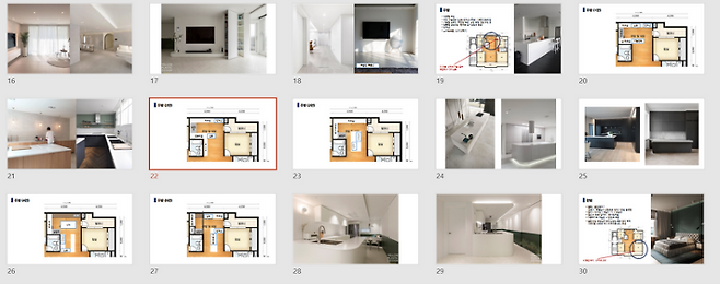 그냥 편하게 PPT에 평면도와 공간별 이미지를 구분해서 넣었어요. 제 요구 사항을 가장 잘 전달하기 위해서 최대한 구체적인 사진을 넣었습니다. (처음엔 30장 정도였는데 마지막 미팅때는 80장까지;)