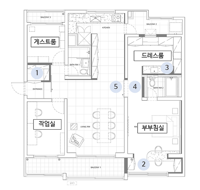 공사 후 도면입니다. 주요 구조 변경 사항은...