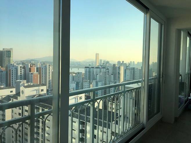 고층이라 멀리 산과 강이 보여요. 구축아파트라 발코니가 넓은데, 아직은 그냥 비워둔 채로 있어요. 이제 날이 따뜻해지니 조만간 소품을 들여 단장해 볼 계획입니다.