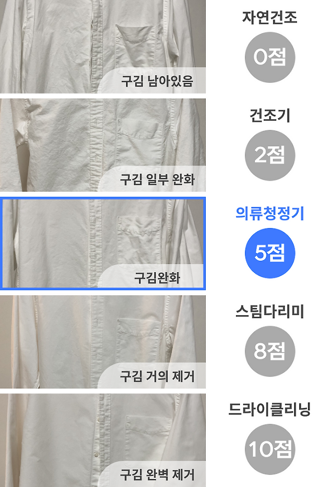 드라이클리닝을 대신할 만큼 의류 관리에 좋은 의류관리기이지만, 그 정도로 구김 제거를 하지는 않습니다.