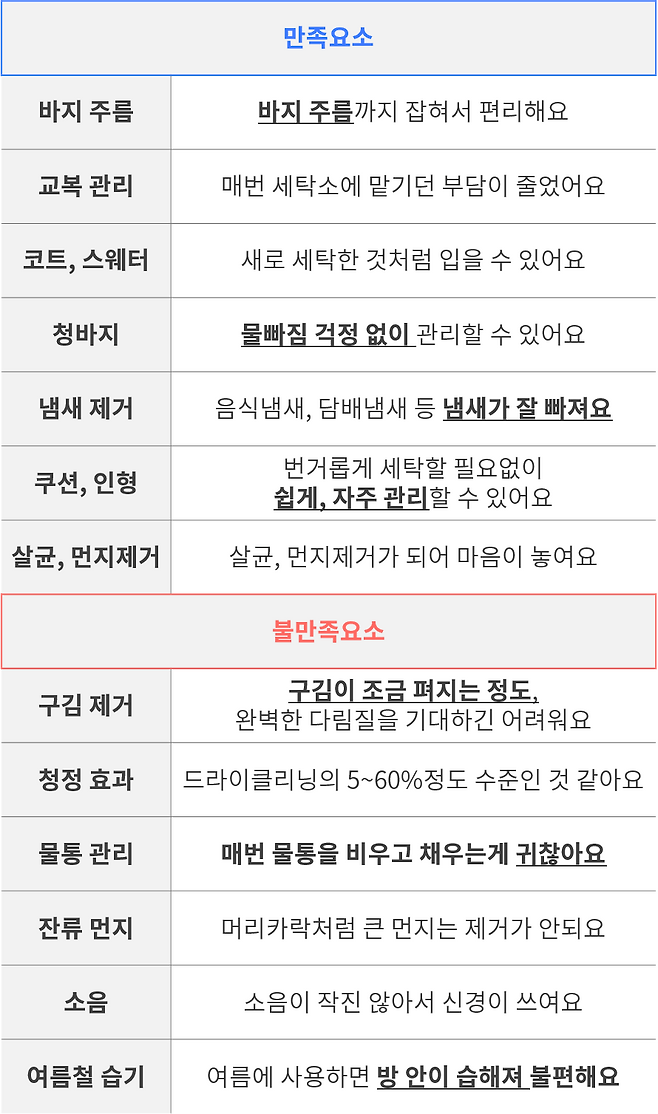 의류관리기 만족 포인트