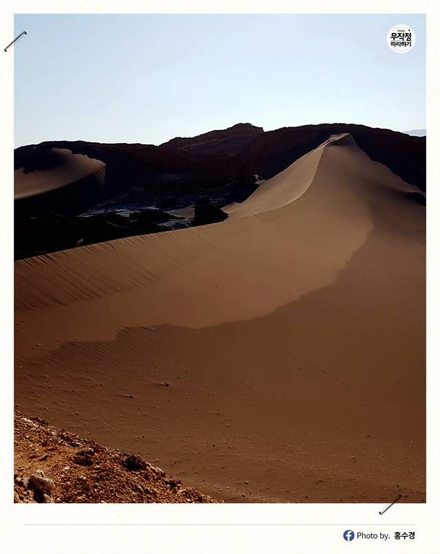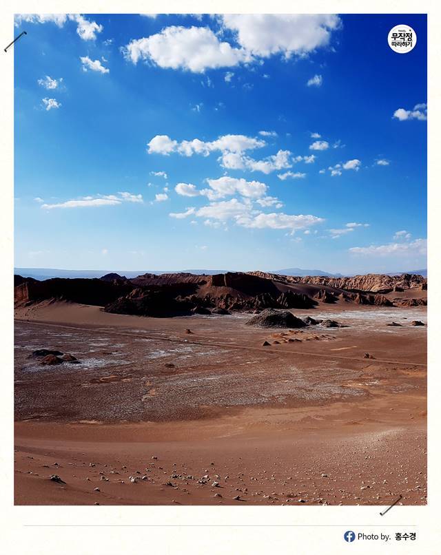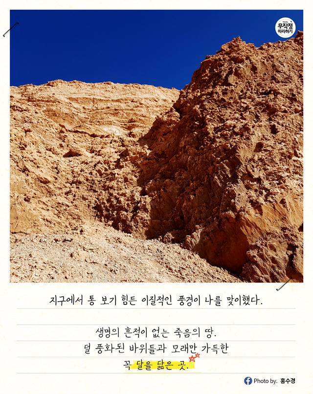 사막이라고 하면 일반적으로 사하라 사막처럼 거대한 모래더미만 생각할 텐데, 비 한 방울 안 내리는 건조한 풍경은 지구 밖 달 그 자체.