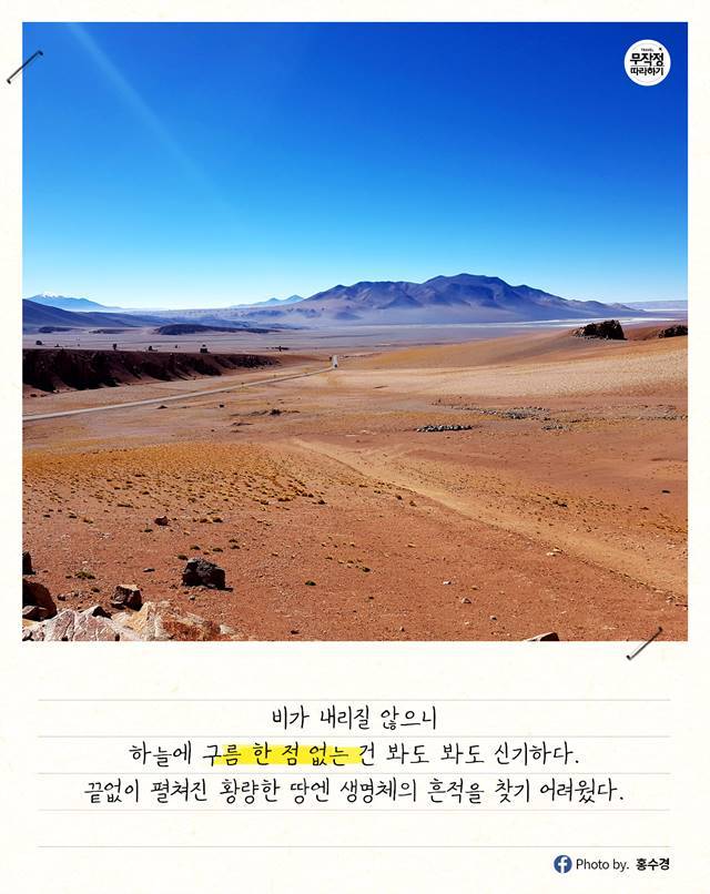 나사에서도 화성으로 보낼 로봇을 테스트할 때 아타카마 사막에서 시험한다더라.