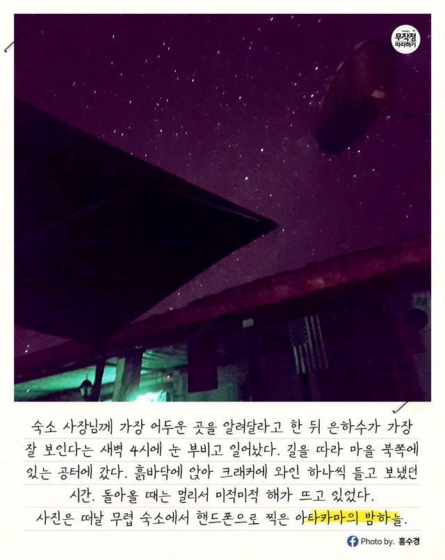사진은 막 떠날 무렵 숙소에서 핸드폰 카메라로 찍은 아타카마의 밤하늘.
