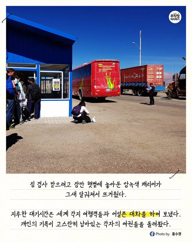 지루한 대기시간은 세계 각지에서 온 여행객들과 어설픈 대화를 하며 보냈다.