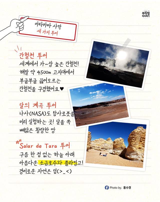 Salar de Tara 투어. 한국 분들이 많이 안 해서인지 유명 포털사이트에도 후기가 별로 없었지만, 투어사에서 보여준 몇 장의 사진으로 흔쾌히 결정한 투어다.