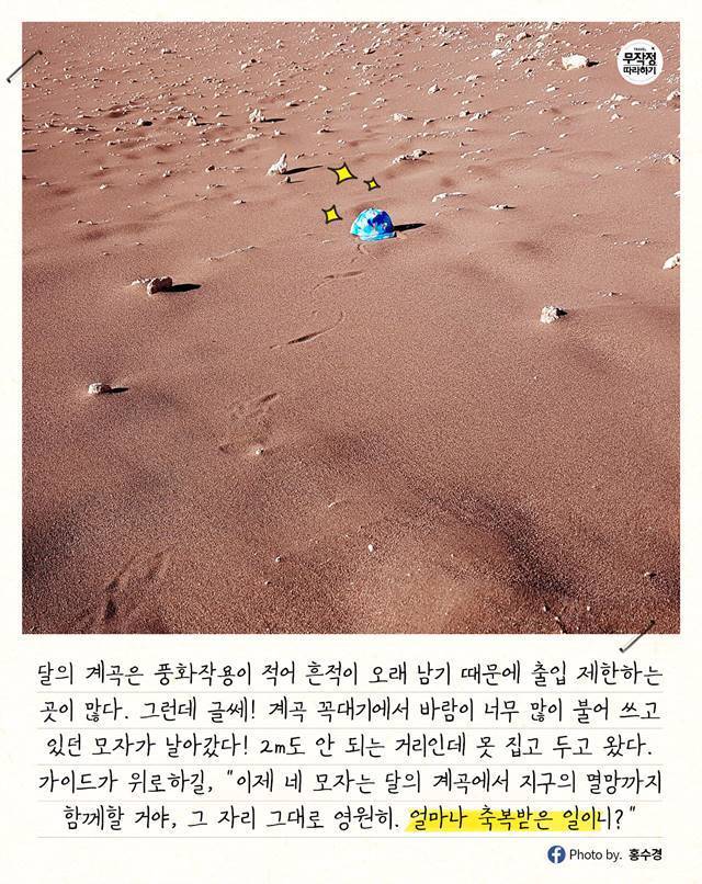 가이드가 위로하면서 "이제 네 모자는 달의 계곡에서 지구의 멸망까지 함께할 거야, 그 자리 그대로 영원히. 얼마나 축복받은 일이니?" 했던 게 아직도 기억에 남는다.