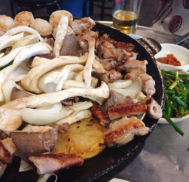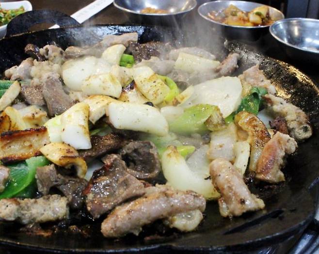 메뉴: 모듬한판 大(55,000원)ㅣ모둠한판 中(39,000원)ㅣ대창+막창(39,000원)ㅣ양구이(22,000원)ㅣ복음밥(3,000원)