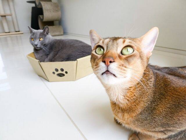 성격이 매우 활동적인 아비시니안. 출신 지역이 인도양 연안이라 이 고양이가 물놀이를 하는 것은 놀라운 일이 아니다.