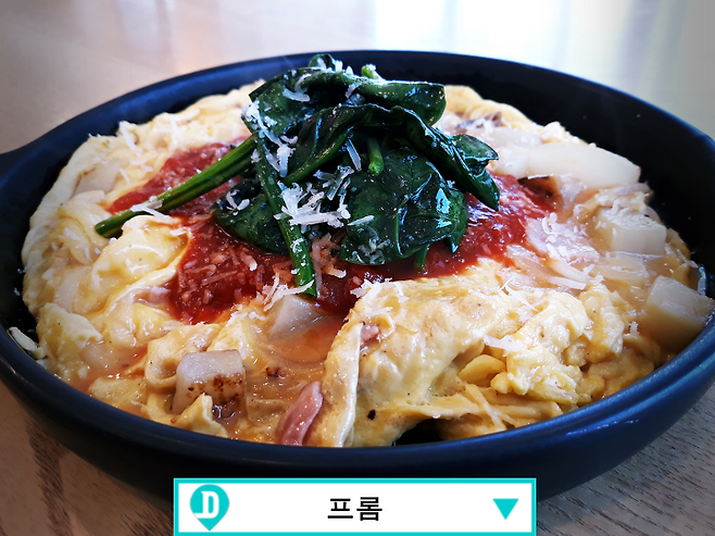 추천하는 메뉴는 스페니쉬 오믈렛! 베이컨과 감자, 그리고 시금치와 계란이 만들어내는 환상적인 맛을 느낄 수 있다.