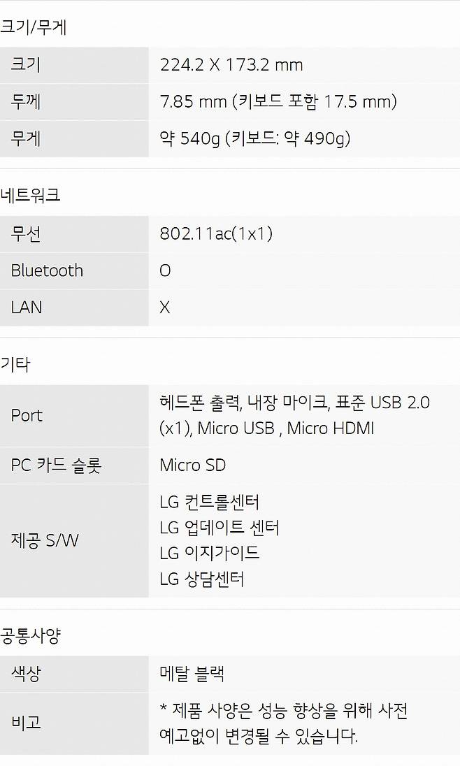제품 소개 페이지 : https://www.lge.co.kr/lgekor/product/pc/notebook/productDetail.do?prdId=EPRD.315557
