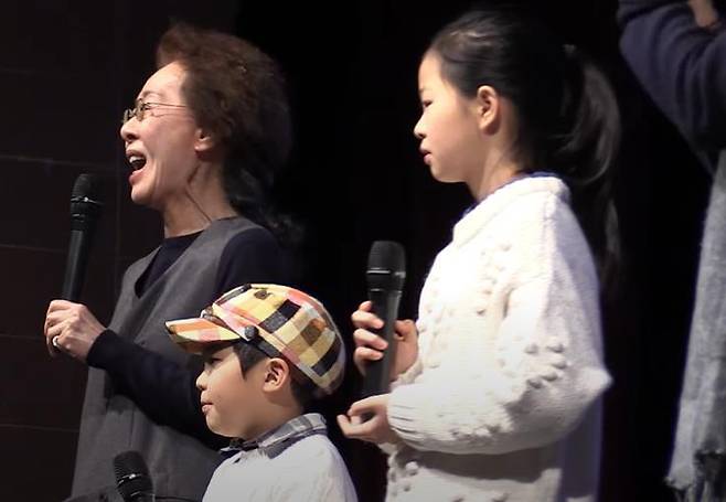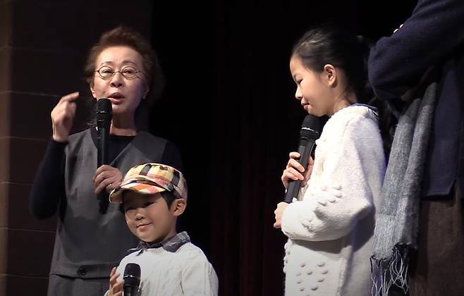 영화의 연출을 맡은 정 아이삭 리 감독(이하:정감독)이 배우들을 일일이 소개한 장면. 이때 윤여정을 소개하는 자리에서 정감독이