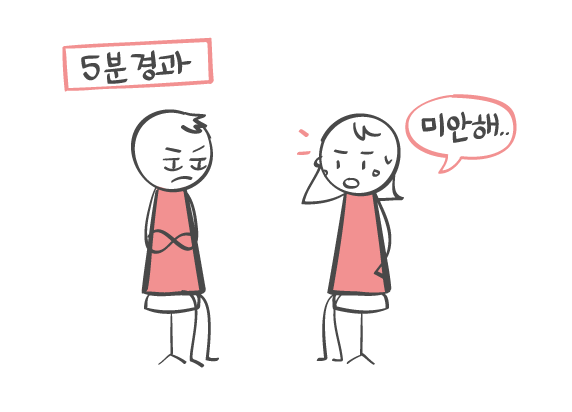 5분 뒤에 사과를 하도록 시킨 거죠.