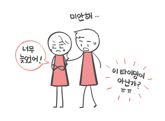 사과를 할 타이밍을 정해주었어요.