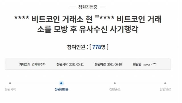 청와대 국민청원에도 신속한 수사와 강력한 처벌을 요청하는 청원글이 올라왔다. 피해자들의 피해규모는 적게는 수십만원부터 많게는 수억원에 달하는 이까지 다양하다. 거래소 측이 “서버 복구 중” 등의 이유를 대며 기다려 달라고 하고 있어 아직 피해를 인지하지 못한 경우도 포함하면 피해자는 수천명에 달할 것이란 예상도 나온다.