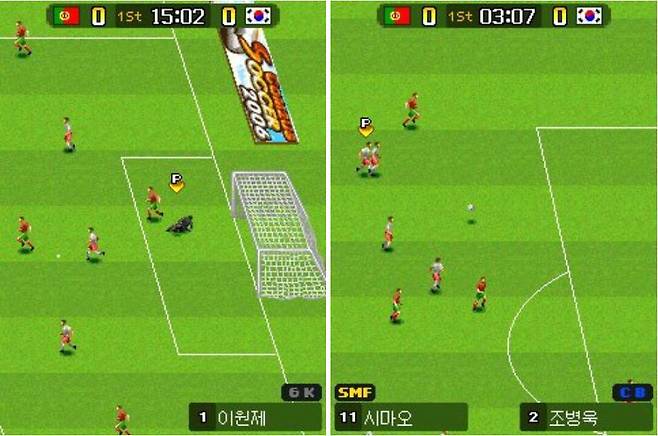 조기자 : 저도 당시에 피처폰 담당하면서 이 게임을 열심히 플레이 했었죠. 제 기억에 '컴투스사커2006'은 사실적인 11인제 본격 피처폰 축구 게임으로, 팀별, 선수별 능력에 차이를 두고 이를 게임에 반영했구요, 선수를 육성해 능력치를 올리거나, 다양한 전술, 전략을 사용할 수 있는 등 콘솔 게임들을 따라가려고 매우 노력을 기울인 작품이었습니다.