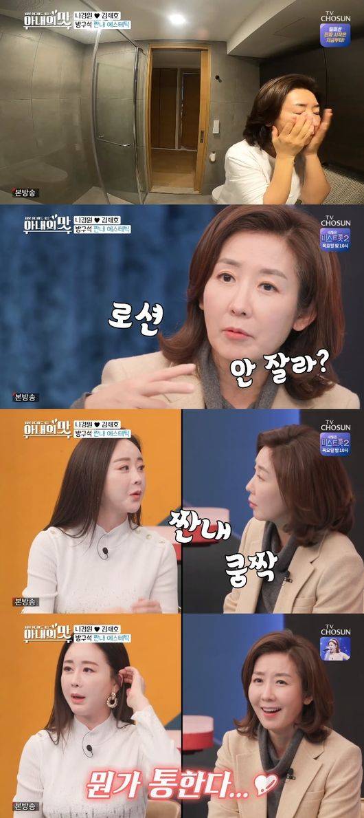 이 날 '아내의 맛'에서는 나경원의 일상이 그려졌다. 세수를 하고 로션을 바르는 모습이 나오자, 나경원은 "너무 적나라하게 나오네요"라며 부끄러워했다. 그리고 로션을 쓰는 모습에 대해 "로션을 다 쓰면 잘라서 더 쓴다"며 "다 그러지 않나요?"라고 하자 함소원은 격하게 공감했다. 함소원은 "잘라서 쓰면 며칠은 더 쓴다"고 말했고, 나경원은 "우리 좀 통하는게 있네요"라며 웃었다.