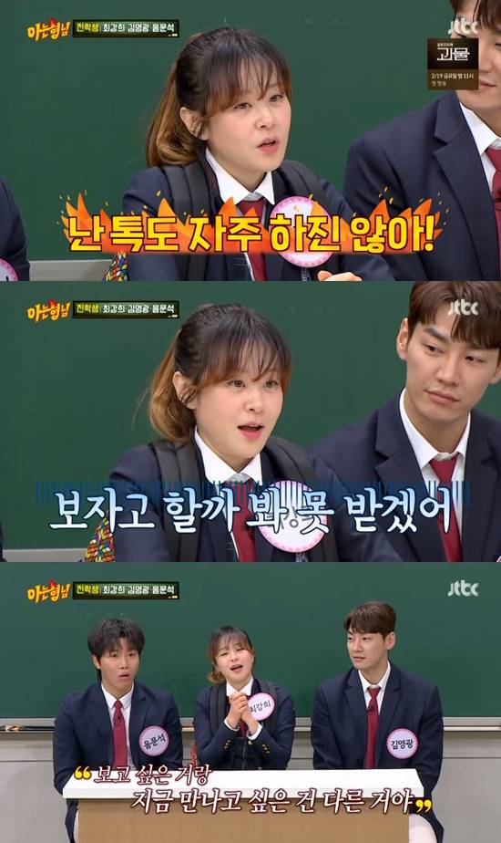 이어 최강희는 "보고 싶다고 톡하면 숙이 언니가 전화하는데 그러면 난 전화를 안 받는다. 우린 친하다. 오히려 내가 전화를 받으면 숙이 언니가 '우씨 왜 전화받아'라고 한다. 전화를 안 받는 이유는 숙이 언니가 보자고 할까 봐서다. 보고 싶은 거랑 지금 만나고 싶은 건 다르다"고 강조했다.