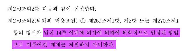 여기서 정부는 '형법 270조의2'라는 항목을 새로 추가합니다. '낙태죄'에 대해 일부 허용요건을 제시한 것인데요.