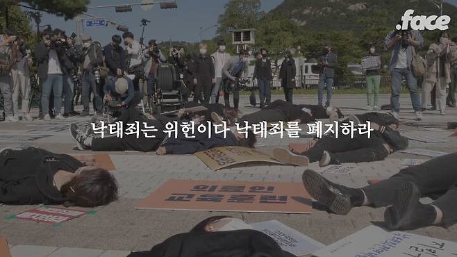 이 구호는 1년 전 헌법재판소가 낙태죄에 대해 '헌법불합치' 결정을 내린 이후 잘 쓰이지 않던 구호입니다. 이들은 왜 이 구호를 다시 외치게 되었을까요? 그리고 왜 청와대가 '후퇴'했다고 이야기하는 걸까요?