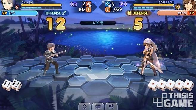 김현수 대표: <주사위의 잔영>은 주사위가 많으면 유리한 시스템이라 '솔져'가 '살라딘'을 거의 이길 수 없는 구조였다. 성장이 없어서 극복할 수 없었는데 <주사위의 잔영 for kakao>는 성장을 통해 그 갭을 극복할 수 있는 여지가 충분히 있다. 매칭은 비슷한 수준, 같은 리그 등급과 승률이 비슷한 사람끼리 만나도록 할 것이다.
