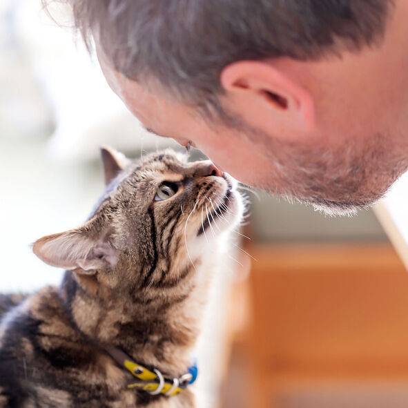 집사에게 가까이 다가가, 입술이나 코, 혹은 손가락에 하는 코 뽀뽀 또한 반가운 인사입니다.