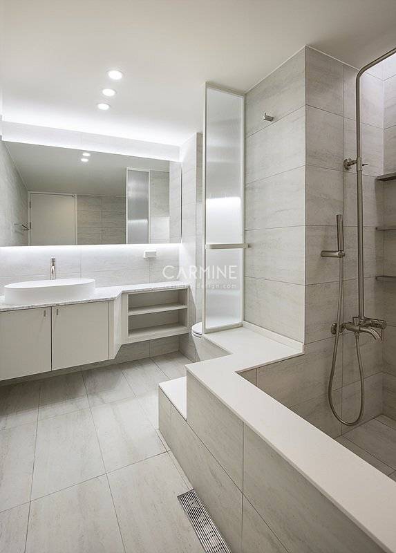 처음에는 욕실을 확장하고, 부부 침실의 붙박이장 (아까 아들이 앉아 있었던 공간)을 샤워실로 사용하려고 했는데 막상 확장을 하고 보니 그 부분이 너무 작아서 샤워실로는 너무 좁겠더라고요. 디자이너와 여러 가지를 협의하다가 이왕 화장실을 확장한 김에 조적 욕조를 하기로 결정했어요.
