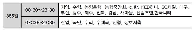 이용시간은 금융결제원 지로시스템과 동일하며, 아래의 표를 참고해주세요.