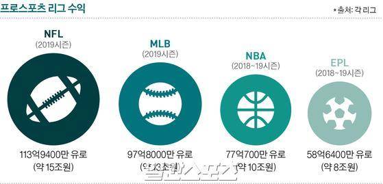 EPL은 네 번째로 수익을 많이 내는 프로스포츠 리그다. 농구는 축구 못지않게 전 세계적인 스포츠이니 그렇다 쳐도, 미국 등 일부 지역에서만 인기 있는 NFL과 MLB가 EPL보다 더 많은 수익을 내는 게 의외라고 생각할 수 있다.