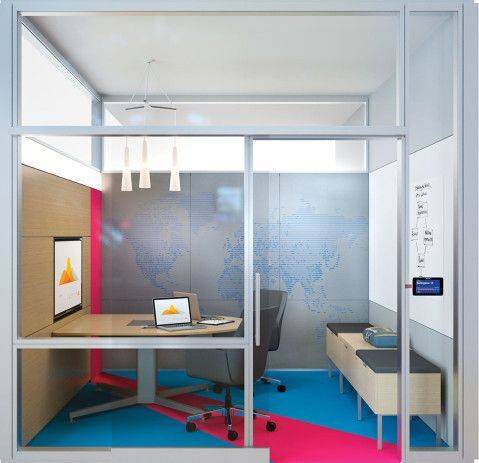 우리가 회사에서 미팅을 한다고 하면 보통 5~6명의 사람들이 회의실에 모여있는 모습을 흔히 떠올리죠. 그런데 절반 이상의 미팅은 일대일 미팅이라고 합니다. 둘이서 옆에 앉아 실무적인 미팅을 하고 바로 결정을 내리는 미팅이 생각보다 많다는 것이죠. 큰 테이블에 빔프로젝트가 있는 회의실 보다는 옆에 나란히 앉아 컴퓨터를 이용해 바로 작업할 수 있는 공간이 더 많이 필요하다고 합니다.