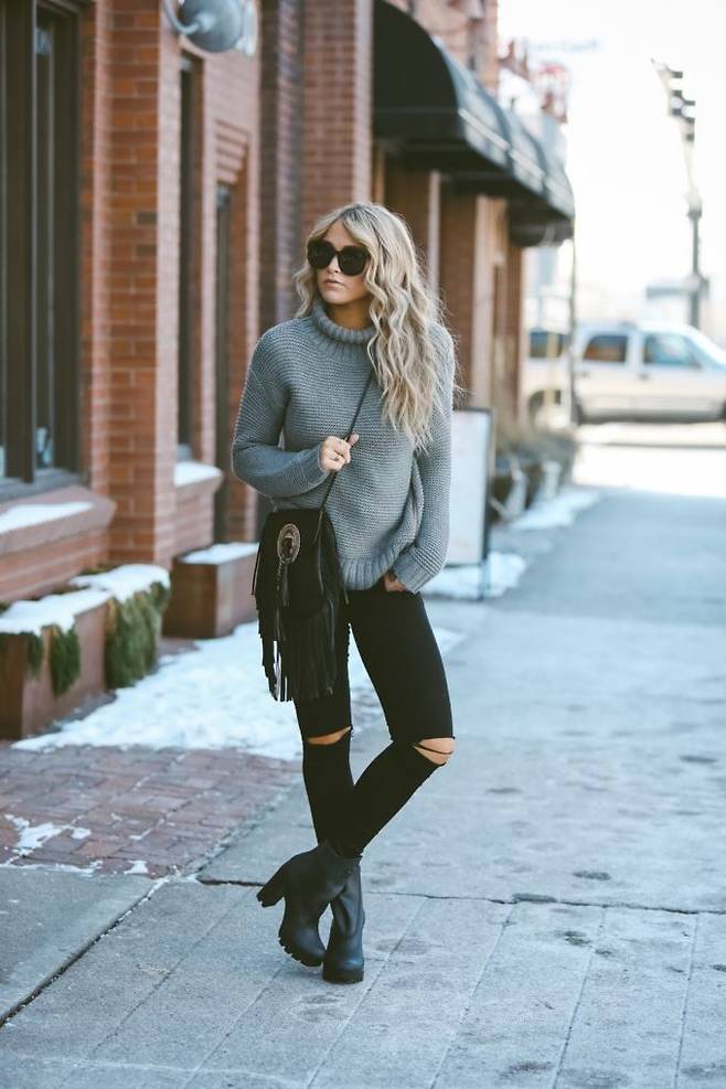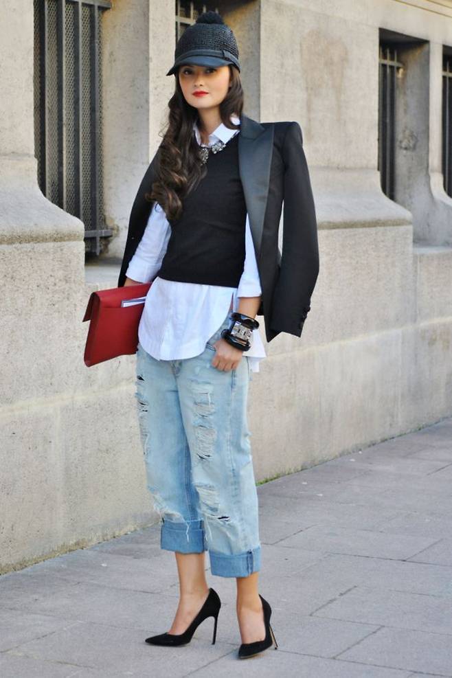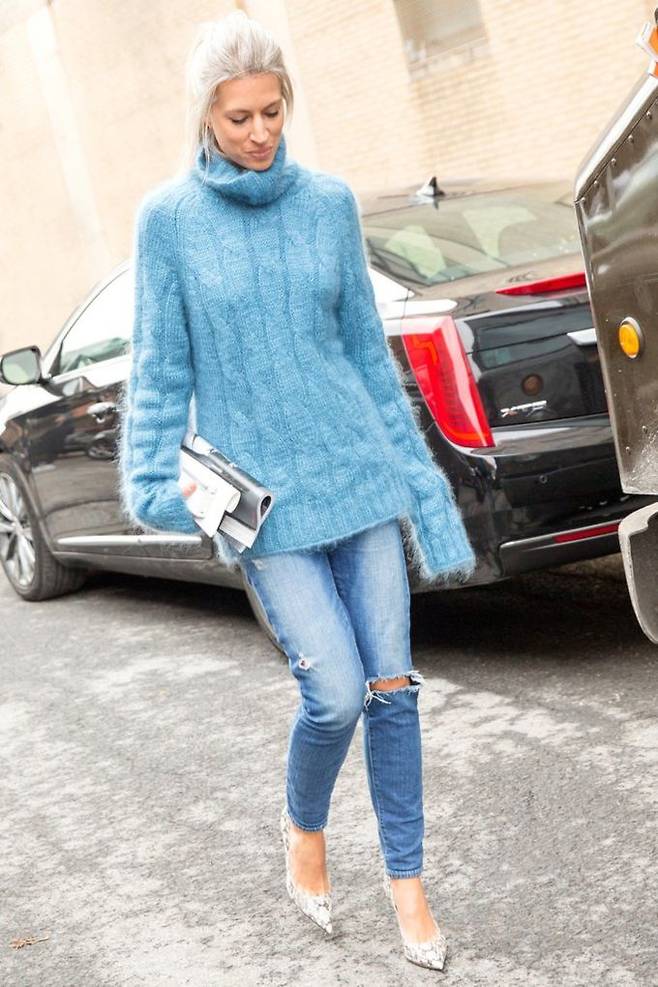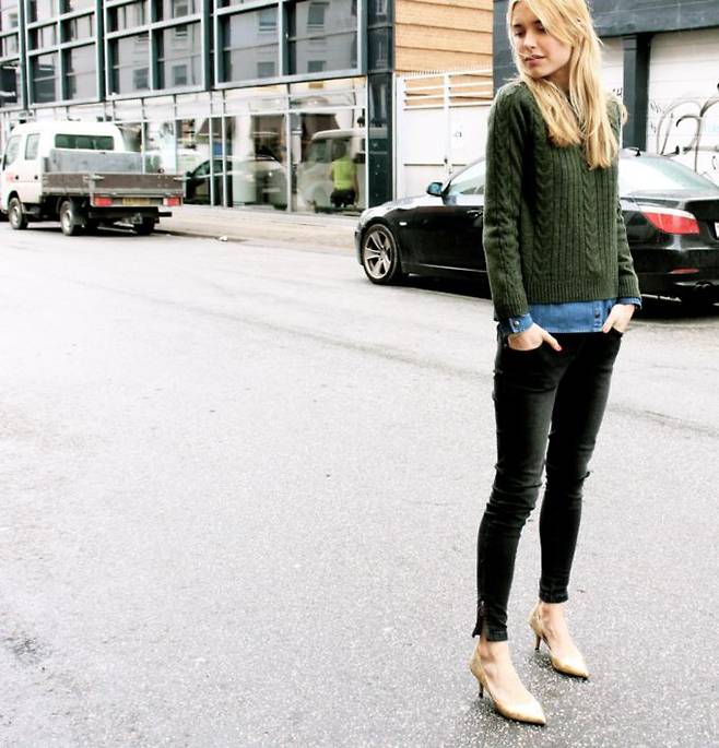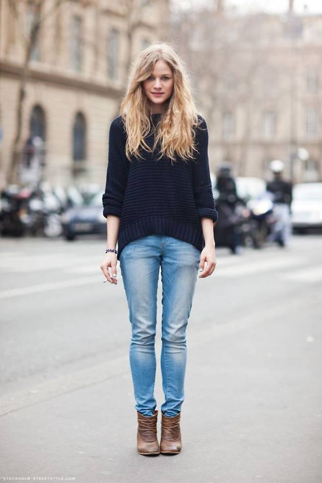 스웨터와 청바지 역시 시간이 지나고 변치 않는 스타일 공식이다. 좀더 트렌디한 스타일로 업그레이드시키고 싶다면 해진 청바지나 혹은 워시드 진으로 스타일링한다. 또는 펌프스나 앵클 부츠를 매치한다.