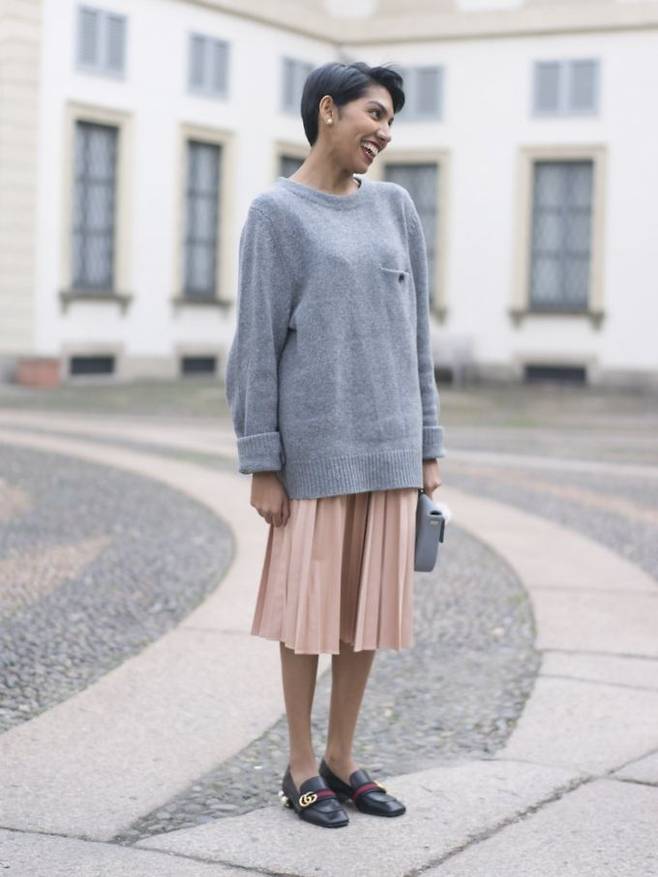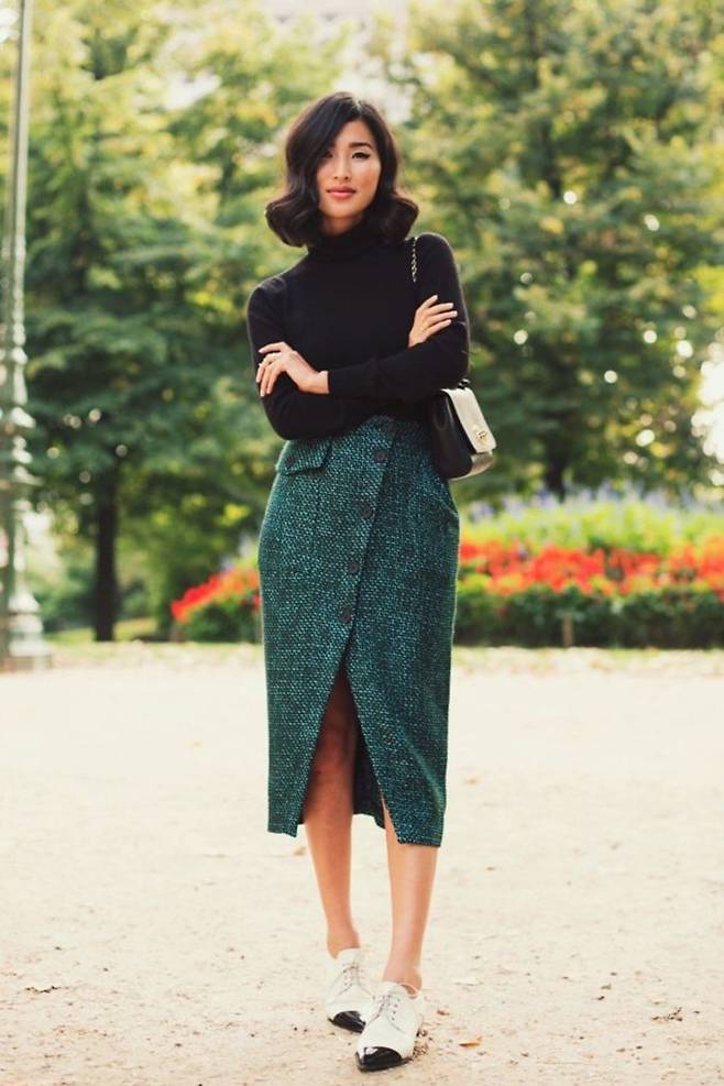 풀 스커트는 지난 수십년동인 클래식한 실루엣으로 몸매를 돋보이게 만들어주는 필수템이었다. 티셔츠, 버튼다운셔츠, 블라우스 등 어떤 상의와도 잘 어울린다. 올 봄시즌에는 좀 더 과감하게 가죽 재킷과 매치해 보자.