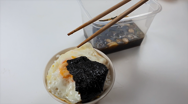 간장게장의 간장에는 송송 썬 파, 다진 마늘, 고춧가루 조금, 참기름 한 방울을 추가해주세요. 이걸 김밥김에 부어주면 완성! 이거랑 계란 후라이랑 먹으면 밥 한 공기 뚝딱이에요.