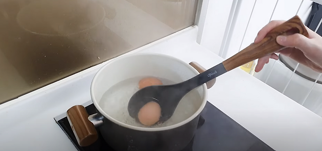 물이 팔팔 끓을 때 국자를 이용해서 계란을 조심스럽게 넣고 7분 정도 삶아주시면 돼요. 계란을 삶을 때 국자로 살살 굴려주면 계란 노른자가 중앙에 올 수 있답니다. 계란을 다 삶았다면 간장에 넣고 냉장고에 6~8시간 숙성해주세요~!